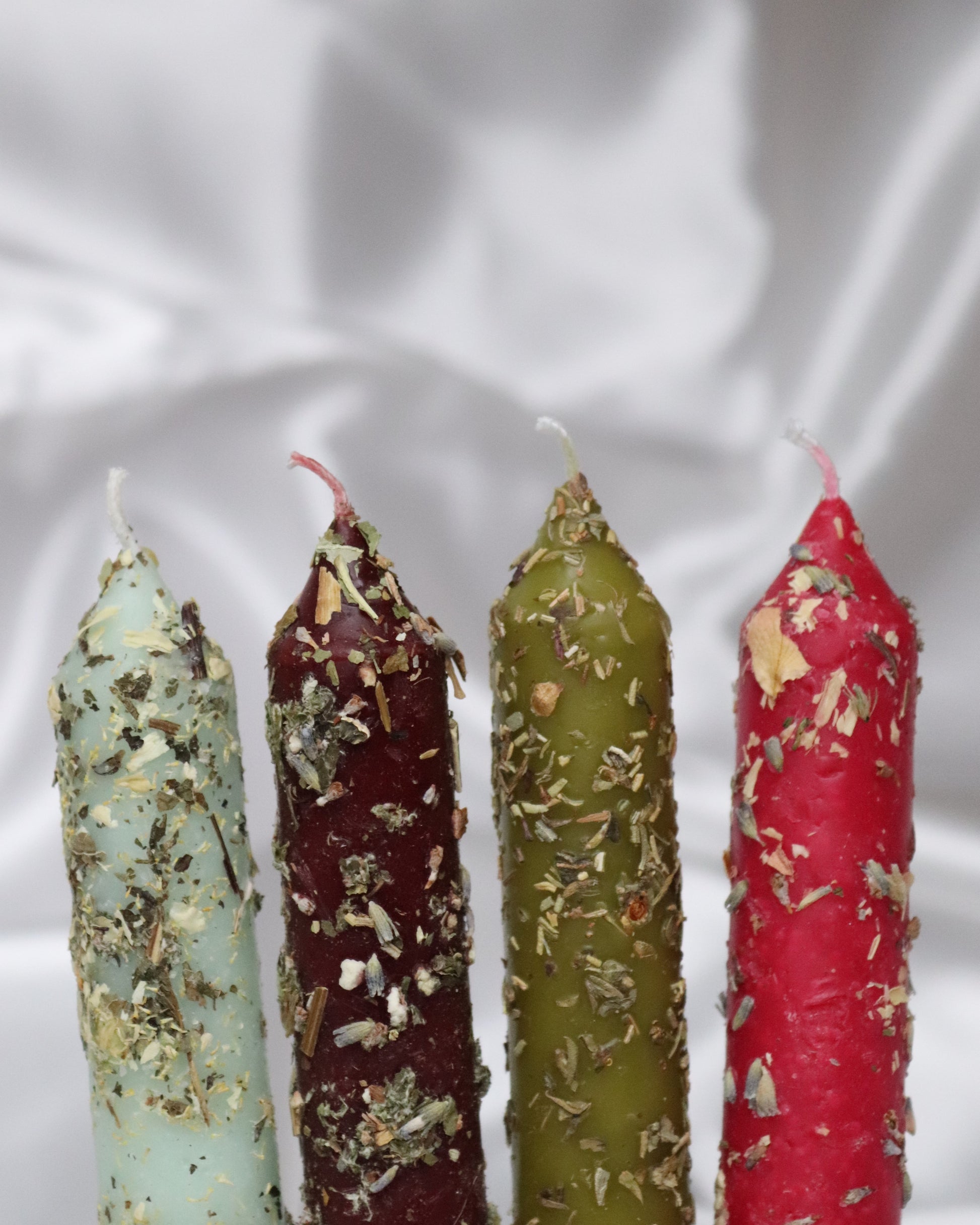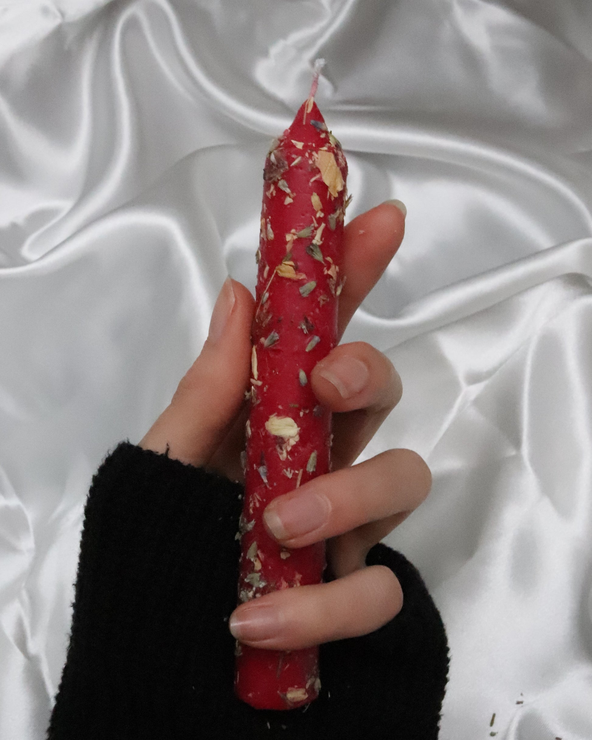 NOTE: The ritual candles are hand-made, therefore the appearance may vary per piece. Please note that the color, (amount of) herbs and drips on top of the candle you receive may look a bit different from the photos.